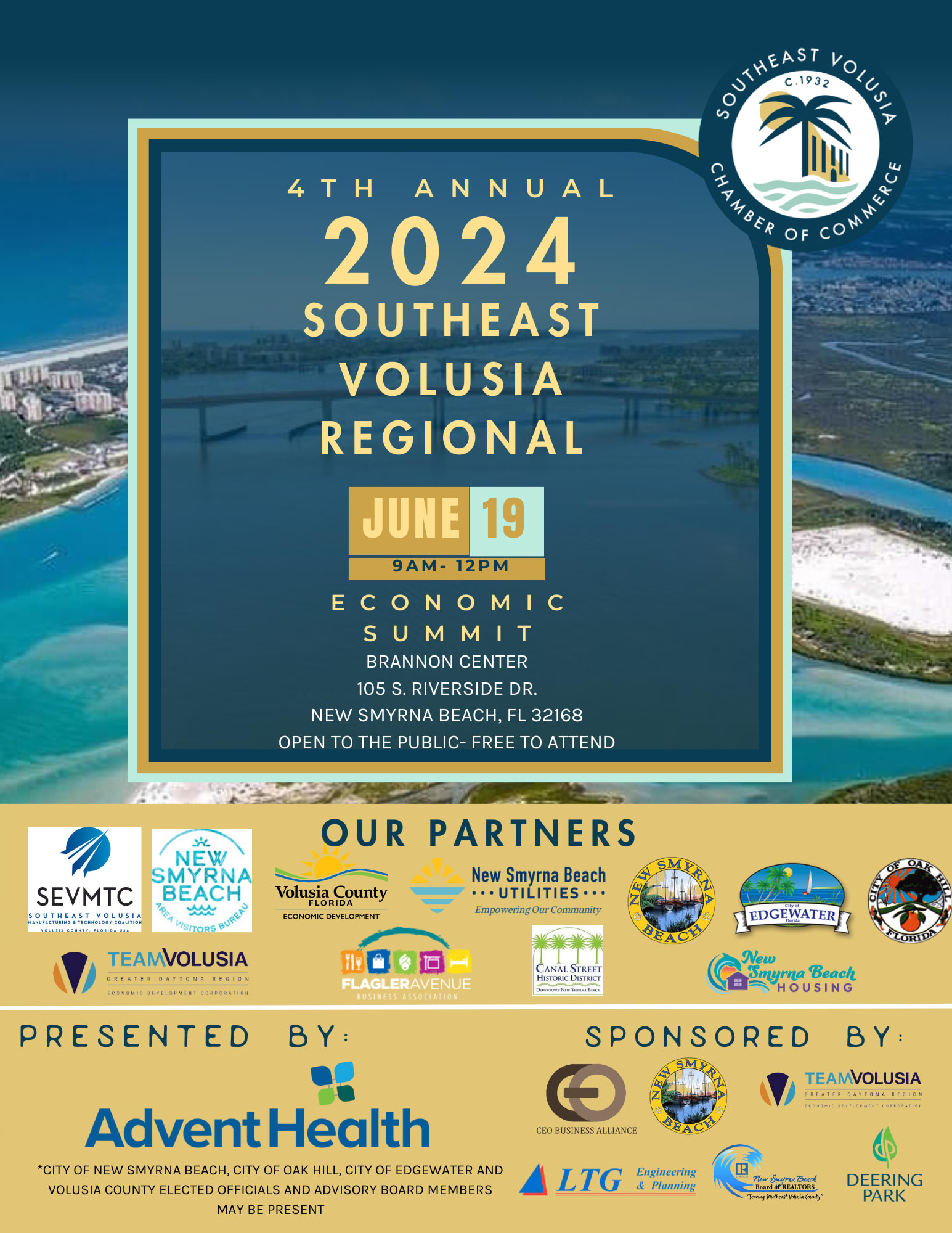 *One or more elected official may be present from the City of New Smyrna Beach, Edgewater, Oak Hill, and Volusia County.