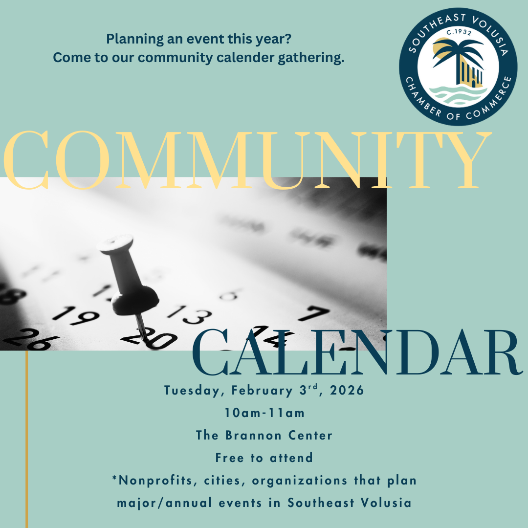 The SEV Chamber Community Calendar Event brings together nonprofits, organizations, civic groups, and city partners who plan large-scale events in Southeast Volusia. This collaborative session helps align schedules, share plans, and support one another to minimize conflicts and maximize community impact. If your event is annual, has a multi-year history, draws 200+ attendees or is open to the public, or involves major road closures, this conversation is for you — working together ensures our region’s events are well-coordinated, well-attended, and successful for everyone involved.