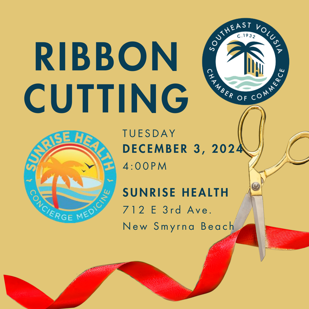 Join the Southeast Volusia Chamber of Commerce as we celebrate the ribbon cutting for Sunrise Health Concierge Medicine on October 8 at 4 PM. This special event marks the official welcome of this innovative healthcare provider to the community. Sunrise Health Concierge Medicine offers personalized, patient-centered healthcare designed to provide concierge medical services tailored to your specific needs. They will also be holding a silent auction during the ceremony, with proceeds going to the SEV Habitat for Humanity!