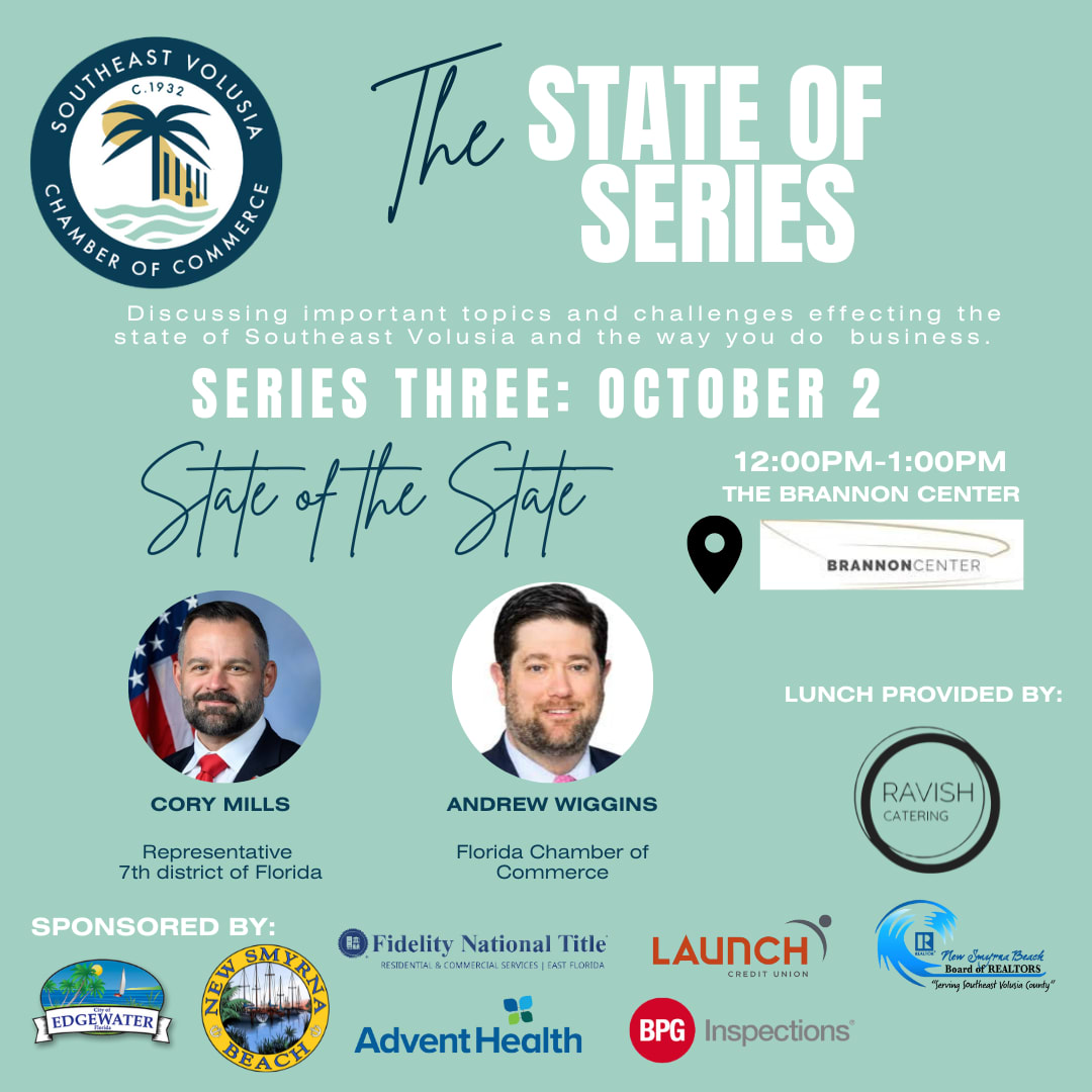 Join us for the 3rd "State of" series: State of Florida with updates from FL State Congressman Cory Mills and the Florida Chamber of Commerce Andrew Wiggins.